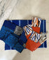 Sophosticated blues. Only 2 sets available. Choose your set. Can add the orange vegan leather cutlery holders