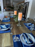 These were crafted to match some of our table napkins. Only blue and orange vegan leather available. Makes a very unique gift to complement a table setting.