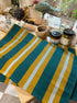 Elevate your table setting with the Verdant Dawn Placemat, a sophisticated blend of natural elegance and modern design. Featuring a stunning combination of silver, gold, and rich green tones, this placemat brings warmth and refinement to any dining experience. The carefully curated color palette complements both contemporary and classic décor, making it a versatile addition to your home. Whether you're hosting an intimate dinner or everyday meals, this placemat transforms your table into a showcase of style and taste. Protect your surfaces while adding that perfect finishing touch that guests will notice and admire.